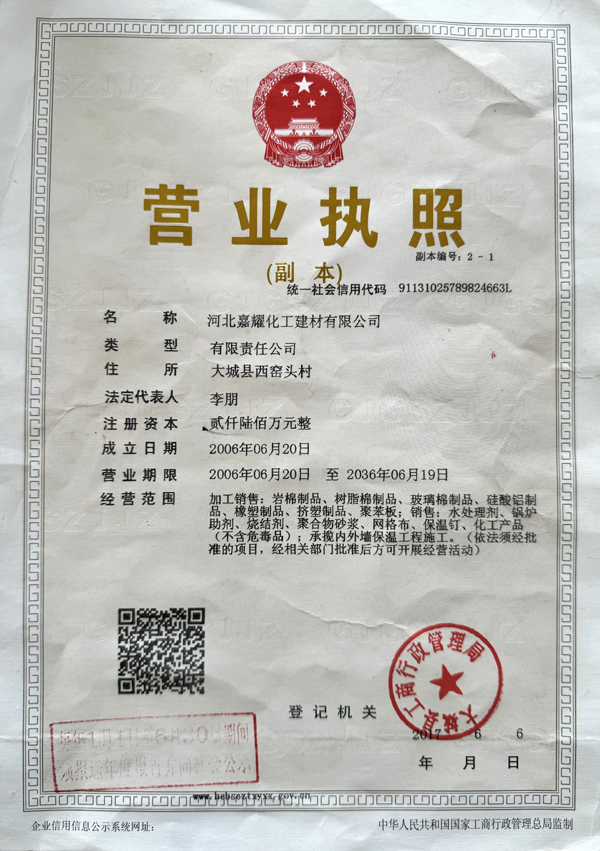 河北嘉耀化工建材有限公司是加工銷售化工、建材保溫材料的企業。在幾年的時間內,通過技術創新、完善企業經營管理,逐步立足保溫材料的市場!公司擁有保溫設備和技術,并引進了技術人員和管理人才。 河北嘉耀化工建材公司結合產品的特點,幾年來公司憑借優良的品質,穩定的性能,完善的服務,誠信的行為,鑄就了嘉耀自己的品牌,產品銷售全國15個省市自治區,并在各主要城市設有銷售部,形成了健全的營銷網絡。 河北嘉耀化工建材公司將會不懈的努力,以開創節能型化工保溫材料市場,打造品質產品,以良好的服務回報社會!...[詳細介紹] |